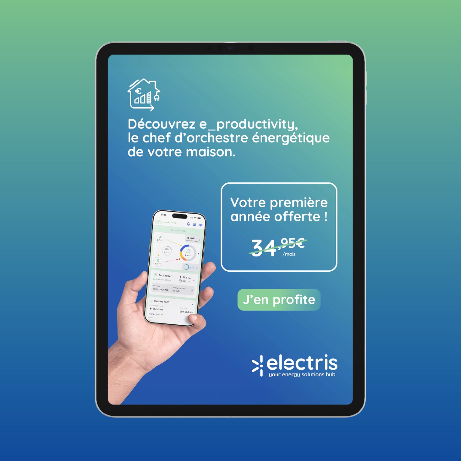 Avec e_productivity, Electris met la technologie au service de l’autonomie énergétique. Le HEMS agit comme un chef d’orchestre : il mesure, analyse et optimise la consommation pour réduire la facture, renforcer l’indépendance et améliorer le confort des foyers.