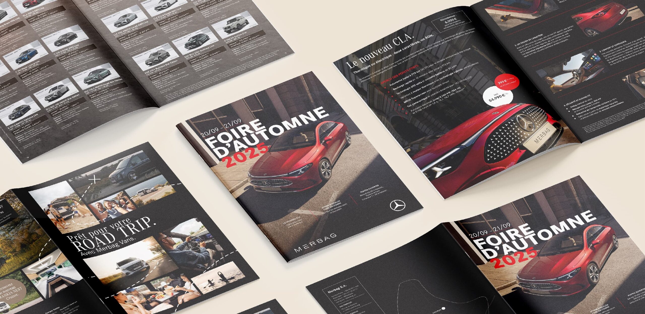 Un outil de communication attractif qui accompagne efficacement la présence de Merbag  et renforce son image de référence dans l’univers automobile haut de gamme.